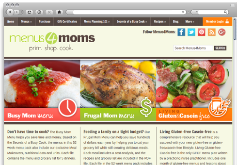 With today’s busy lifestyles, most women find that putting a home-cooked dinner on the table each evening has become an impossible challenge. By providing the tools necessary to make delicious home-cooked meals while still saving time and money, Menus4Moms™ has been helping busy moms enjoy stress-free family dinners since 2005