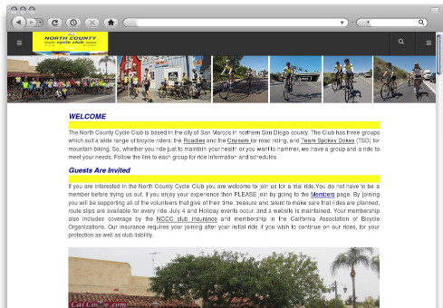 The North County Cycle Club is based in the city of San Marcos in northern San Diego county. The Club has three groups which suit a wide range of bicycle riders: the Roadies and the Cruisers for road riding, and Team Spokey Dokes (TSD) for mountain biking. So, whether you ride just to maintain your health or you want to hammer, we have a group and a ride to meet your needs.